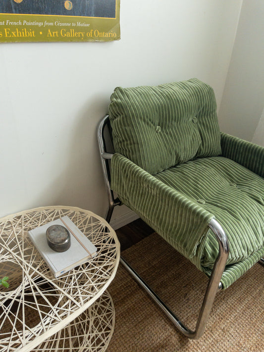 Sold outCorduroy chrome sling back chair