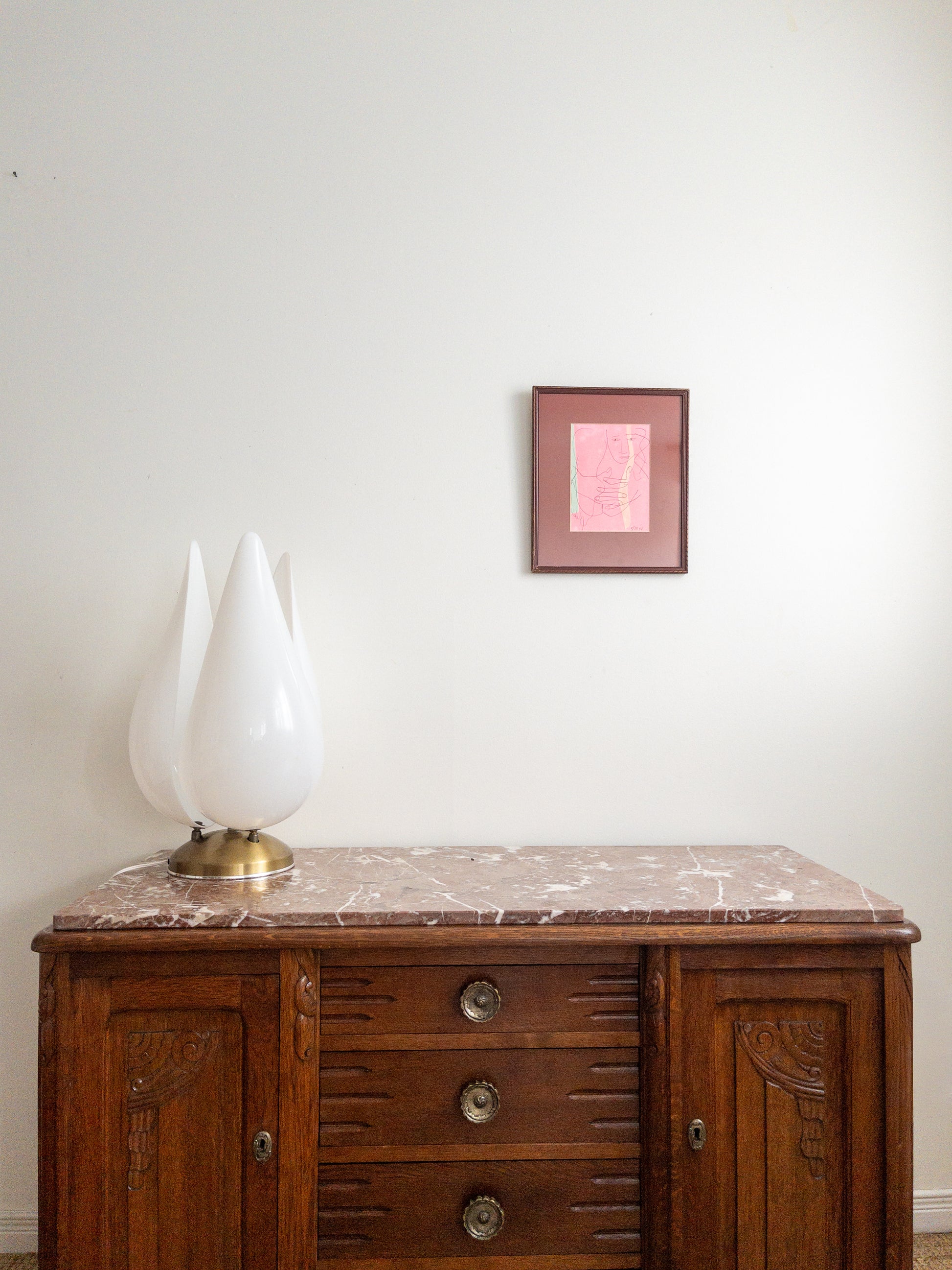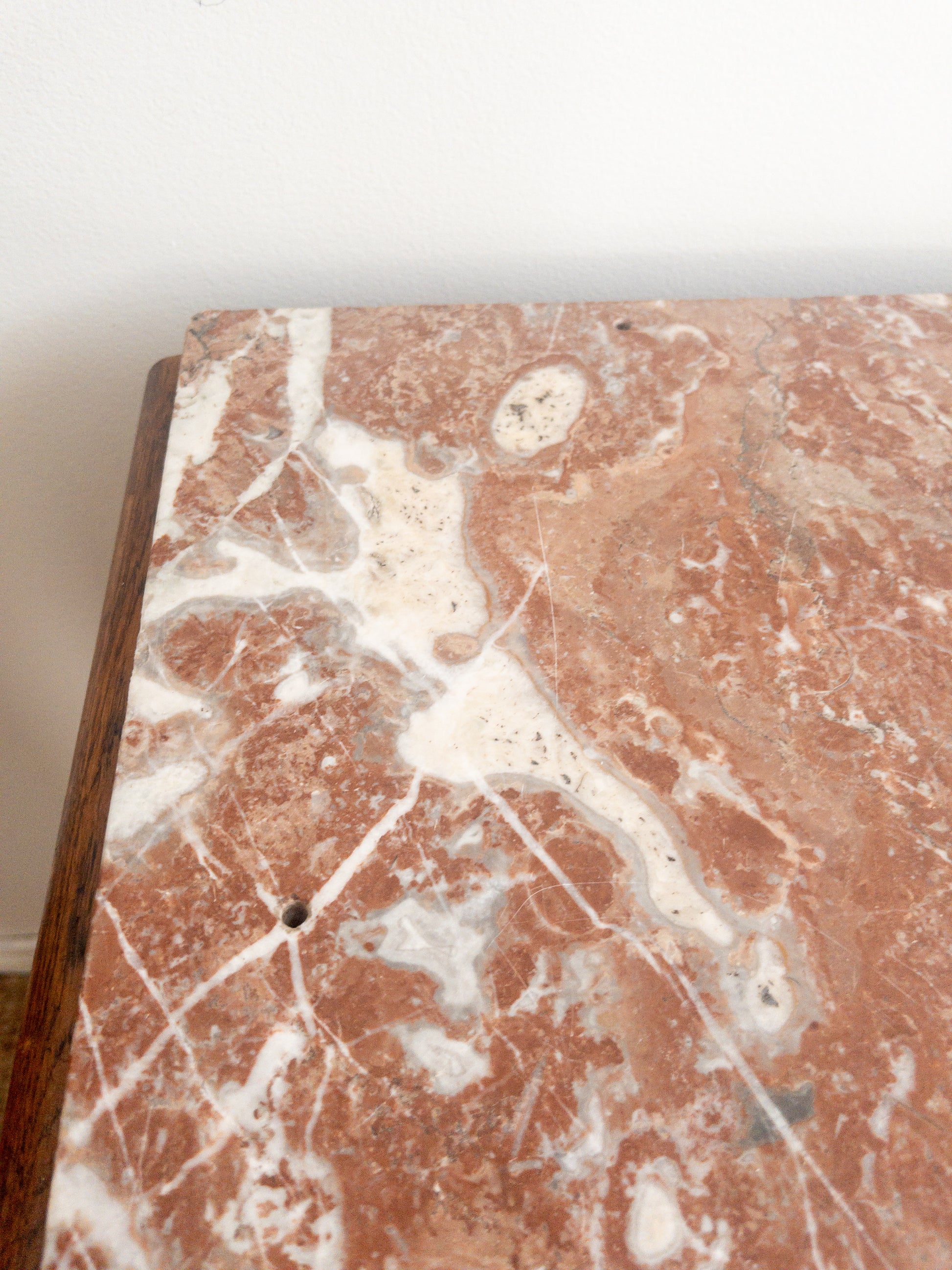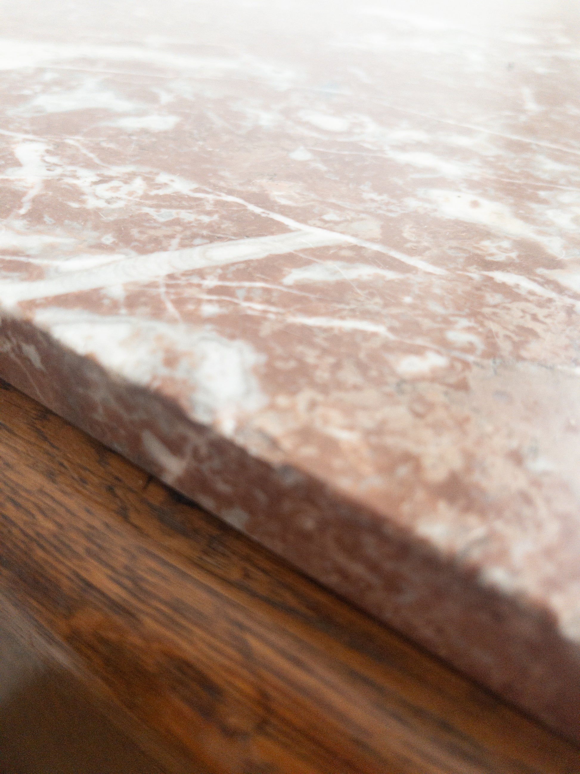 CONDITION: excellent condition. This set was incredibly well taken care of. Marble has a few scratches and a chip or two, see photos, which is to be expected for its age. It Also 4 holes where a mirror would have originally been attached.