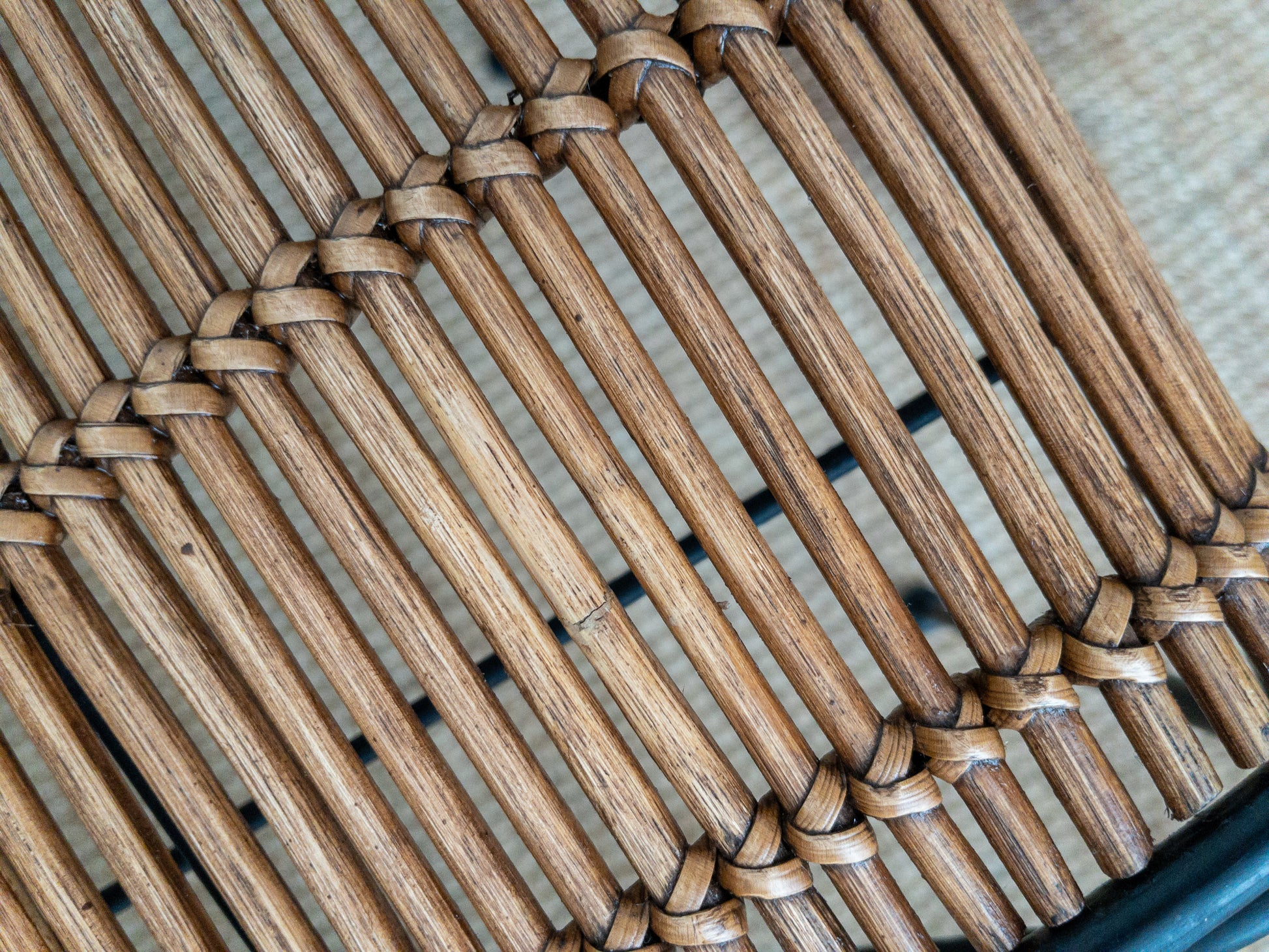 Good vintage condition. Repairs have been made to breaks in bamboo reeds, as shown. Resealed for safe use indoors and outdoors.