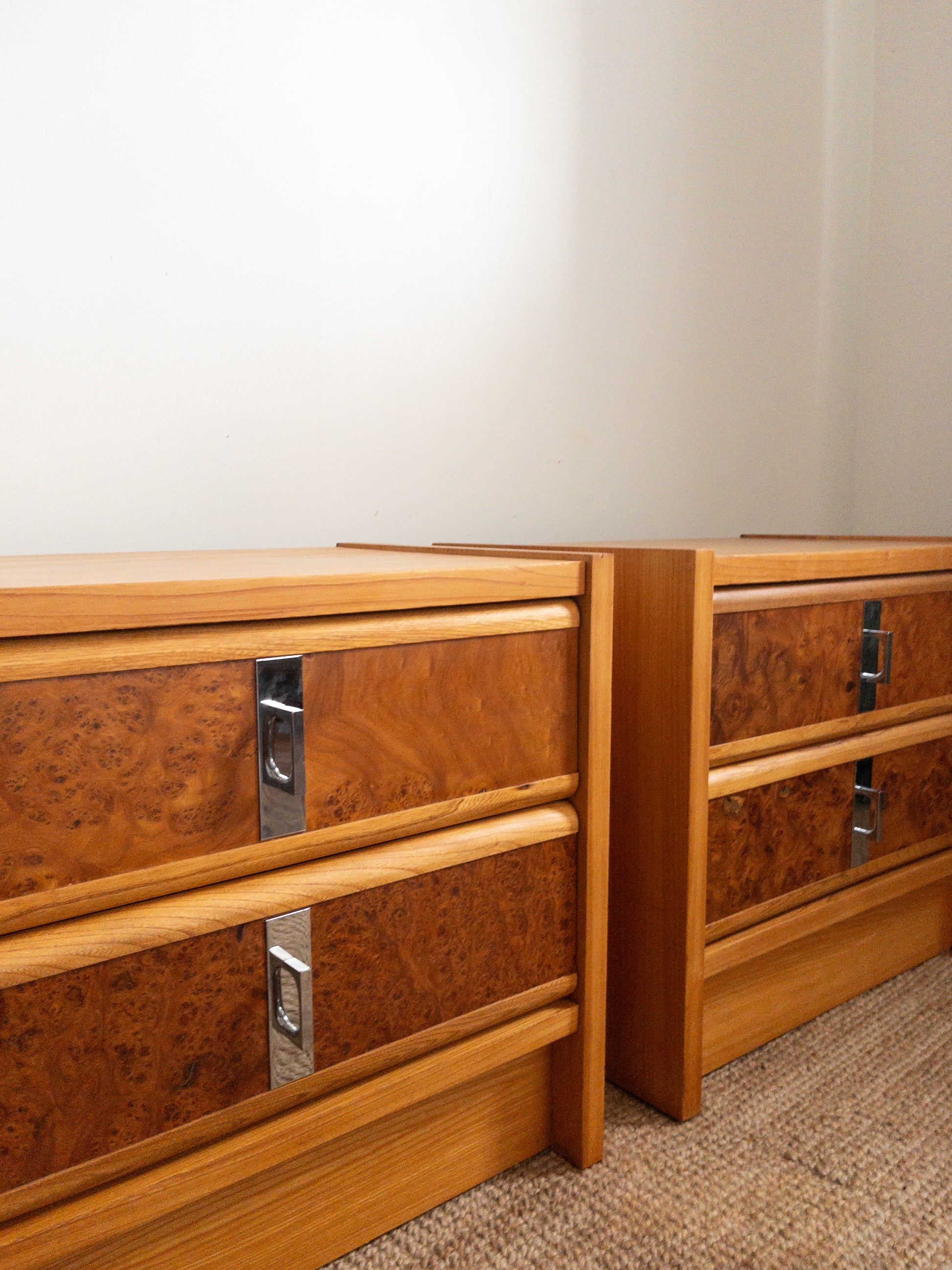 60s Burl wood bedside tables