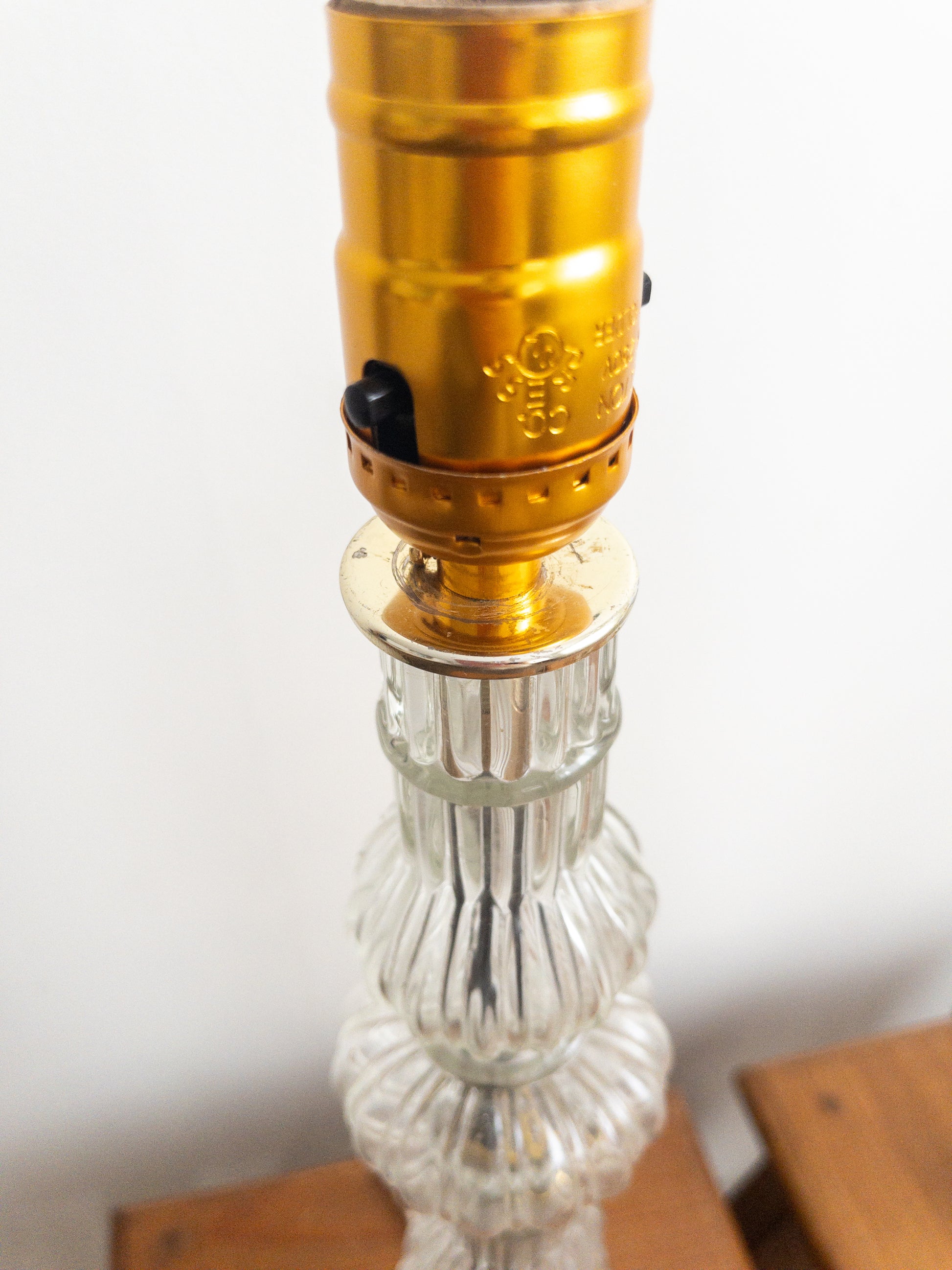Converted from an antique floor lamp. These stunners feature band blown fluted French glass and original brass fittings. Sold WITHOUT shades, bases only.