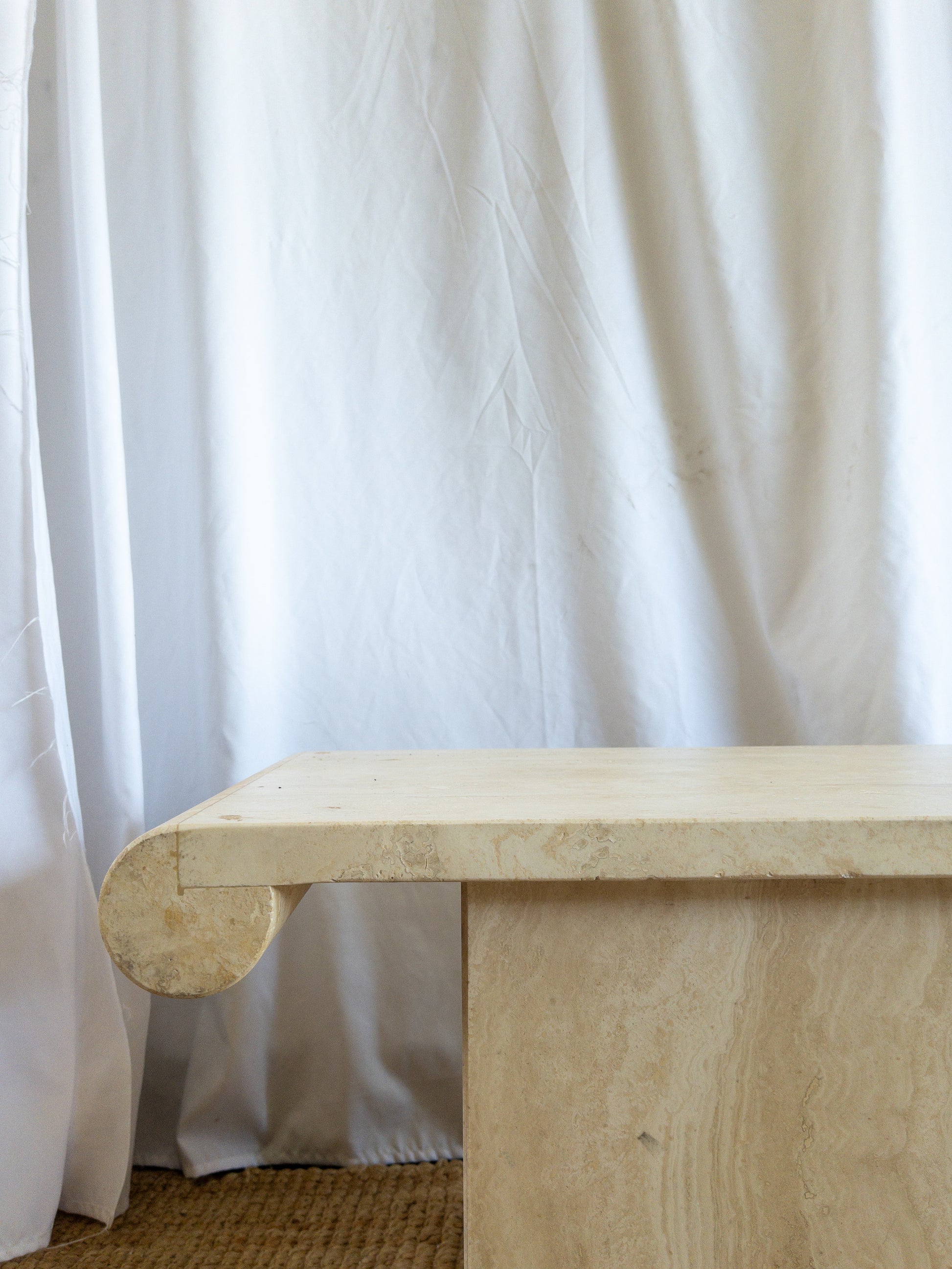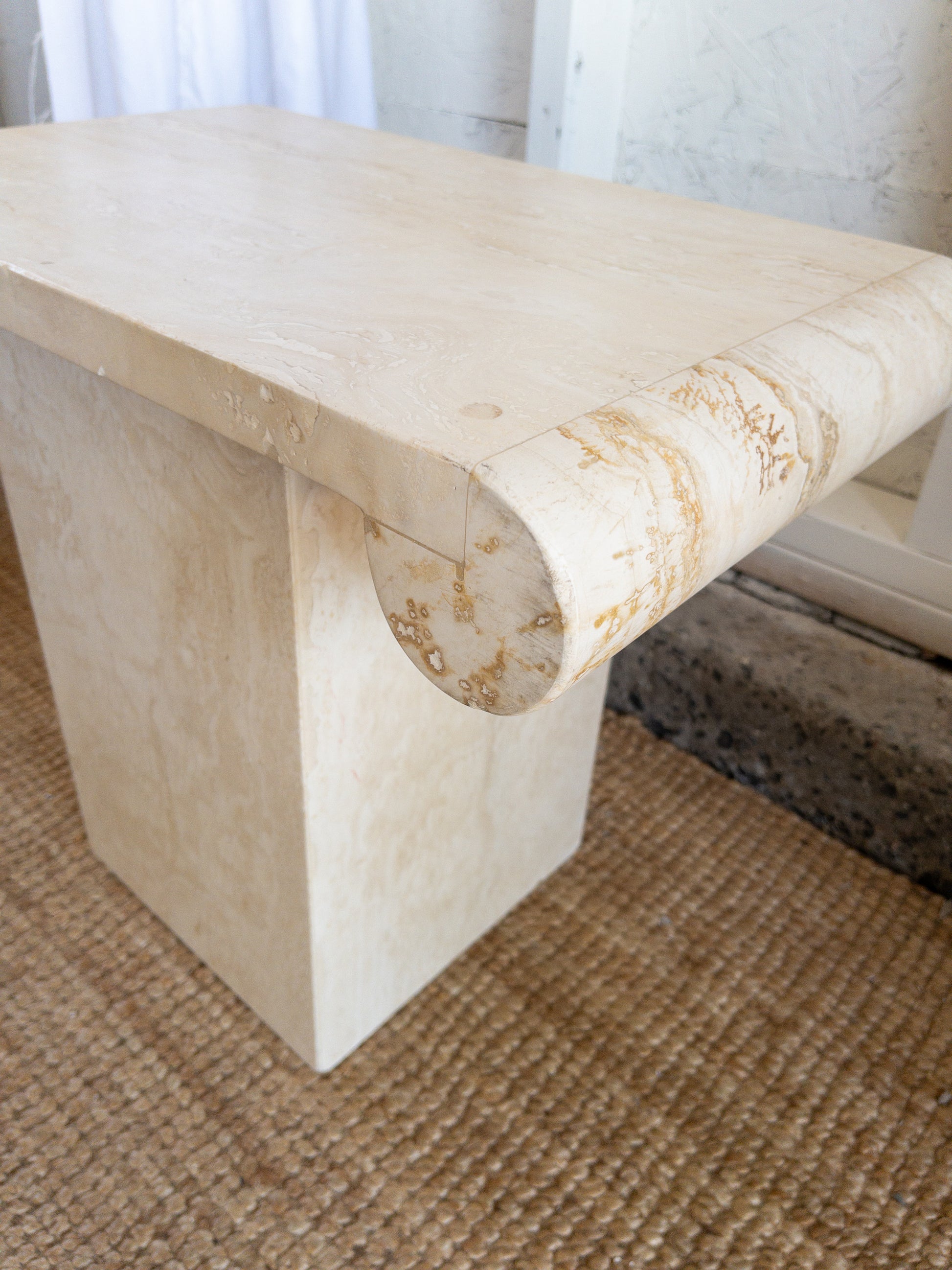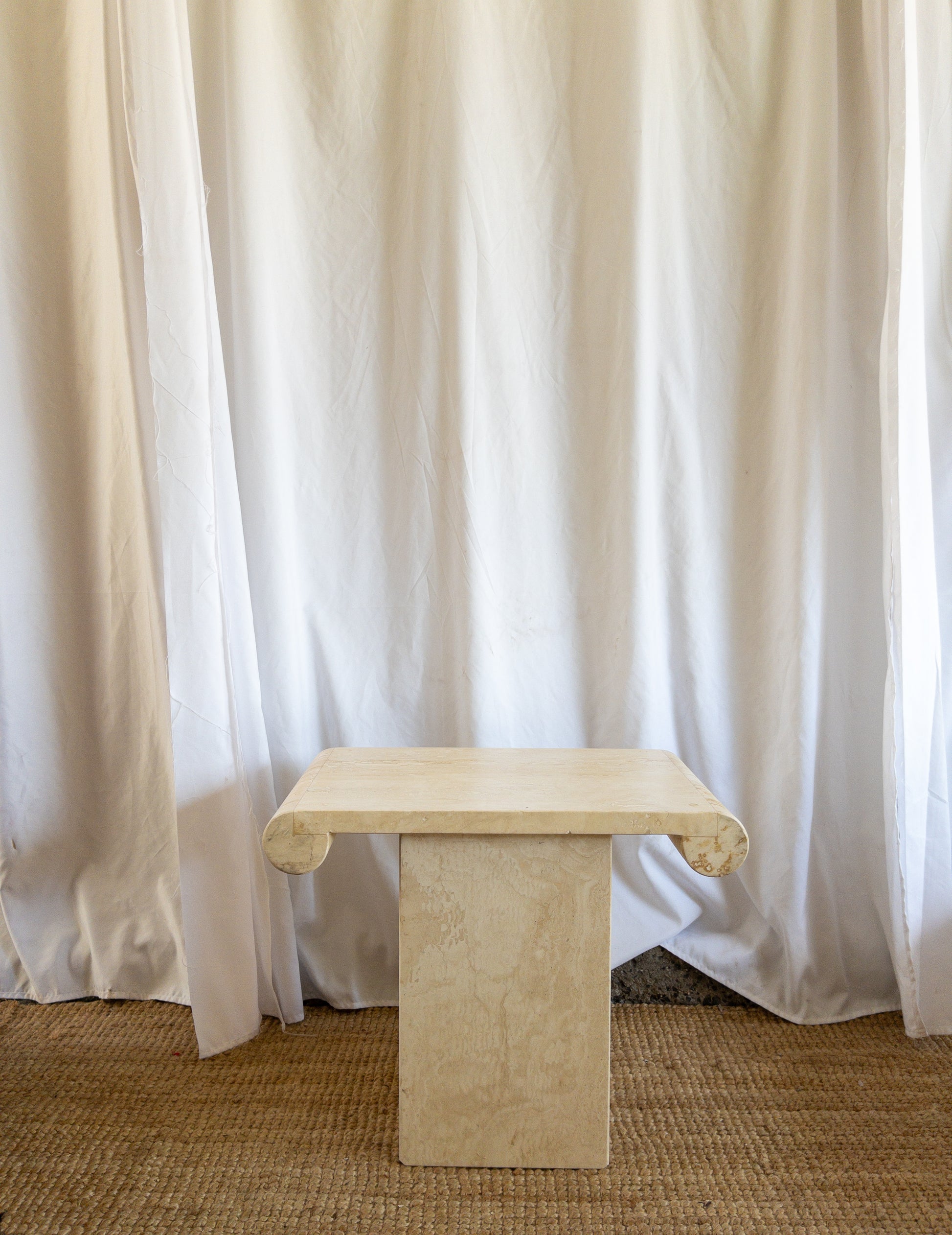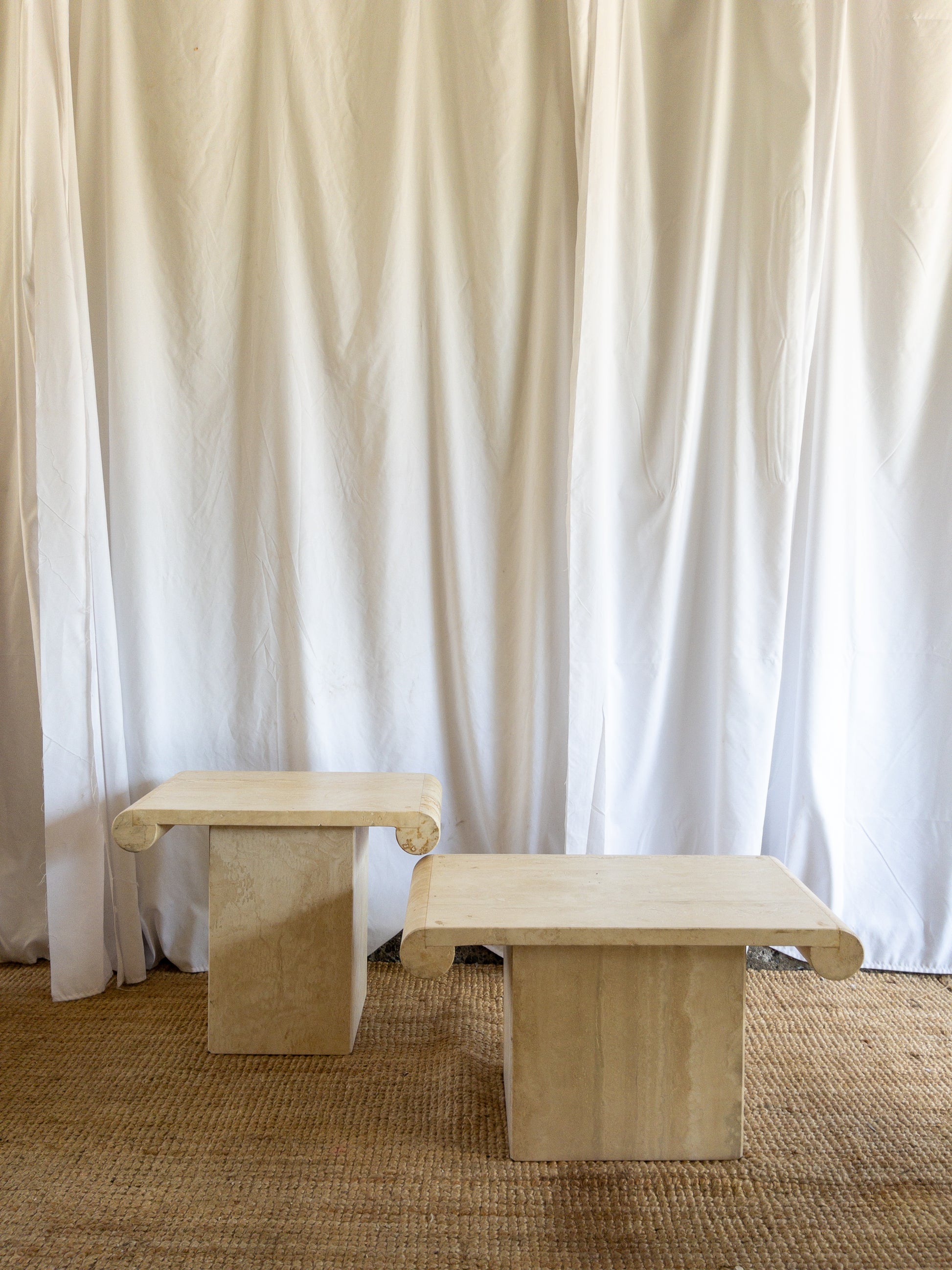 Travertine scroll top side tables