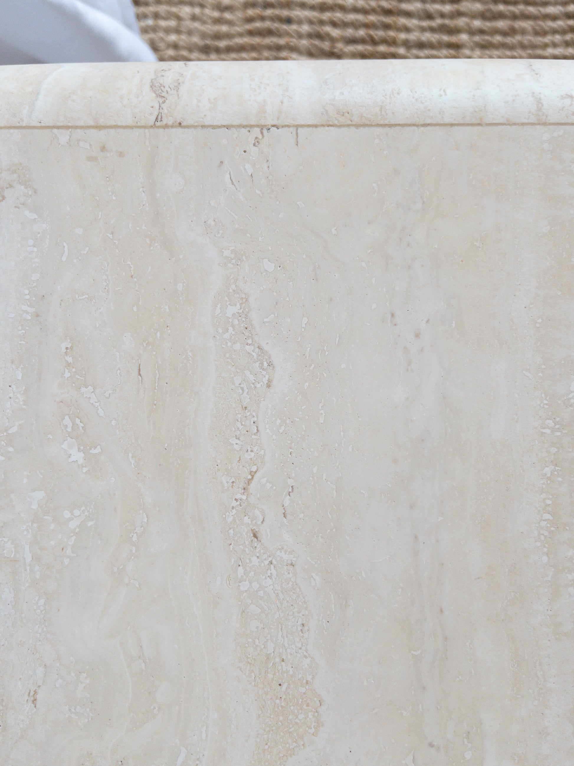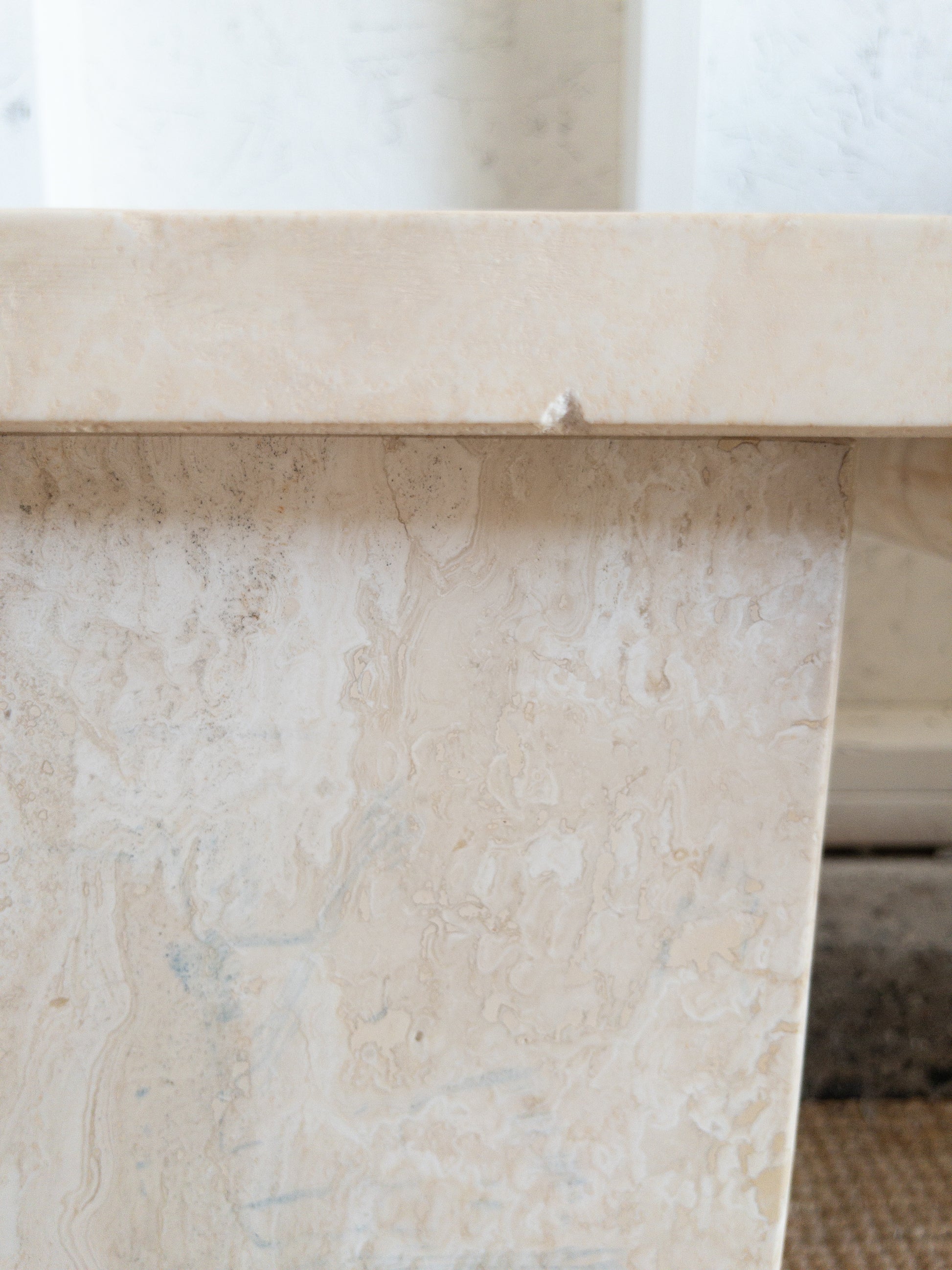 These side tables are crafted from solid travertine stone in two parts: a base and a top. Their subtle difference in size create a lovely play in height and refined neutral hues with rich texture allow them to seamlessly complement a variety of interior styles. sold individually